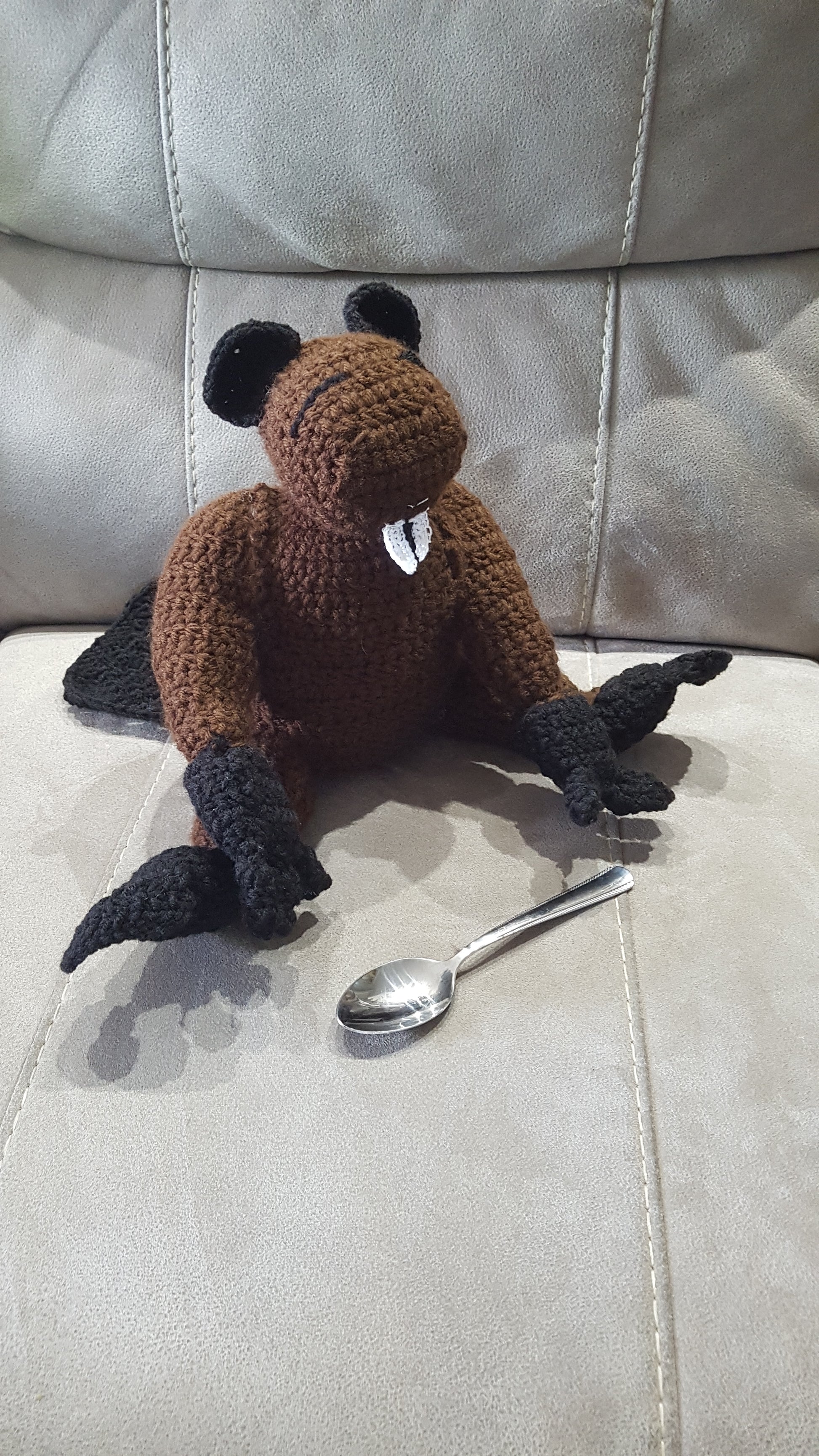A hard-working friend! His flat, textured tail is good for his dam-building day job, but he always has a moment to sit down for a hug. 10" tall plus tail.